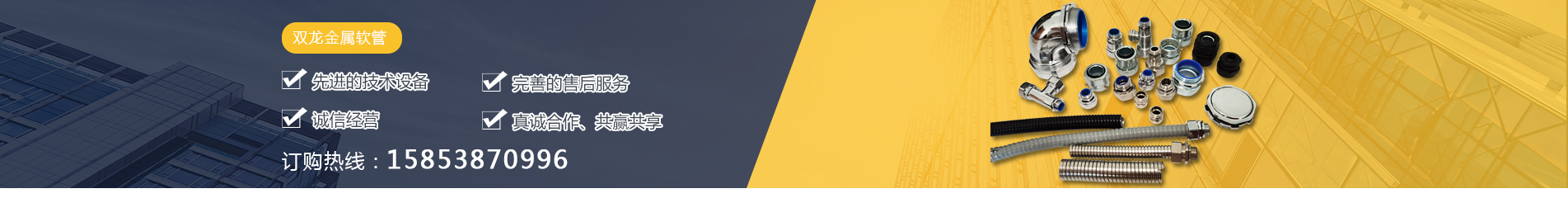 泰安市雙龍線路器材有限公司致力于供應(yīng)包塑金屬軟管,金屬軟管接頭, 不銹鋼軟管接頭,平包塑軟管的銷售、售后服務(wù)于一體的綜合性、現(xiàn)代化 企業(yè)。生產(chǎn)基地 位山東省“一山、一水、一圣人”黃金旅游熱線的中心和泰安市規(guī)劃的工 業(yè)長廊核心位置,工業(yè)發(fā)達(dá),歷史文化悠久,京滬、京福高速公路橫跨我市,交通便利,乘高鐵2-3小時(shí)可達(dá)北京或上海。